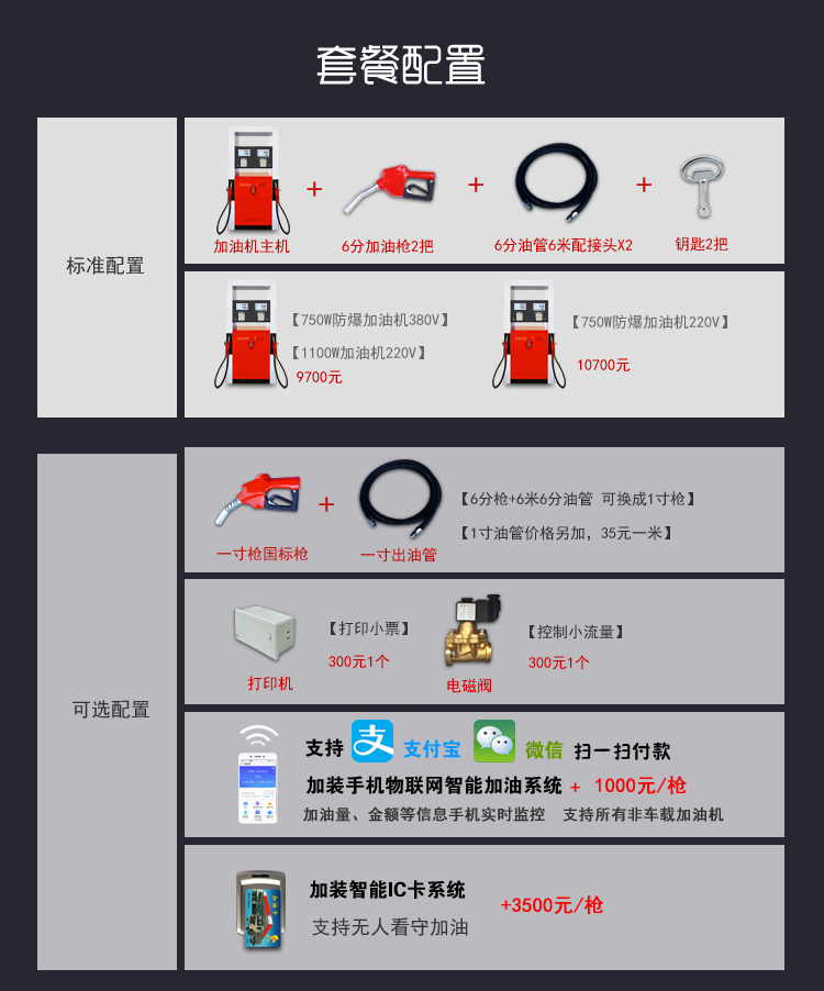 銳嘉新型雙槍加油機IC卡加油機1902XK型是一款加油站防爆汽油插卡加油機,可加柴油和汽油,750W大功率,流量每分鐘可達60L-100L,加油機內部采用軟活塞流量計和防爆組合泵裝置,安全更放心!
